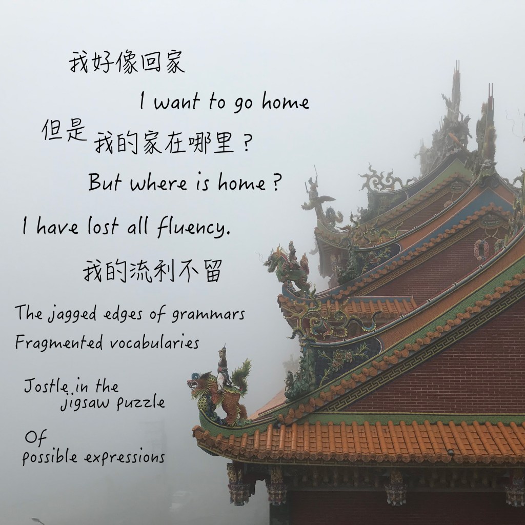 I have lost all fluency. 我的流利不留. The jagged edges of grammars, fragmented vocabularies, Jostle in the jigsaw puzzle Of possible expressions.