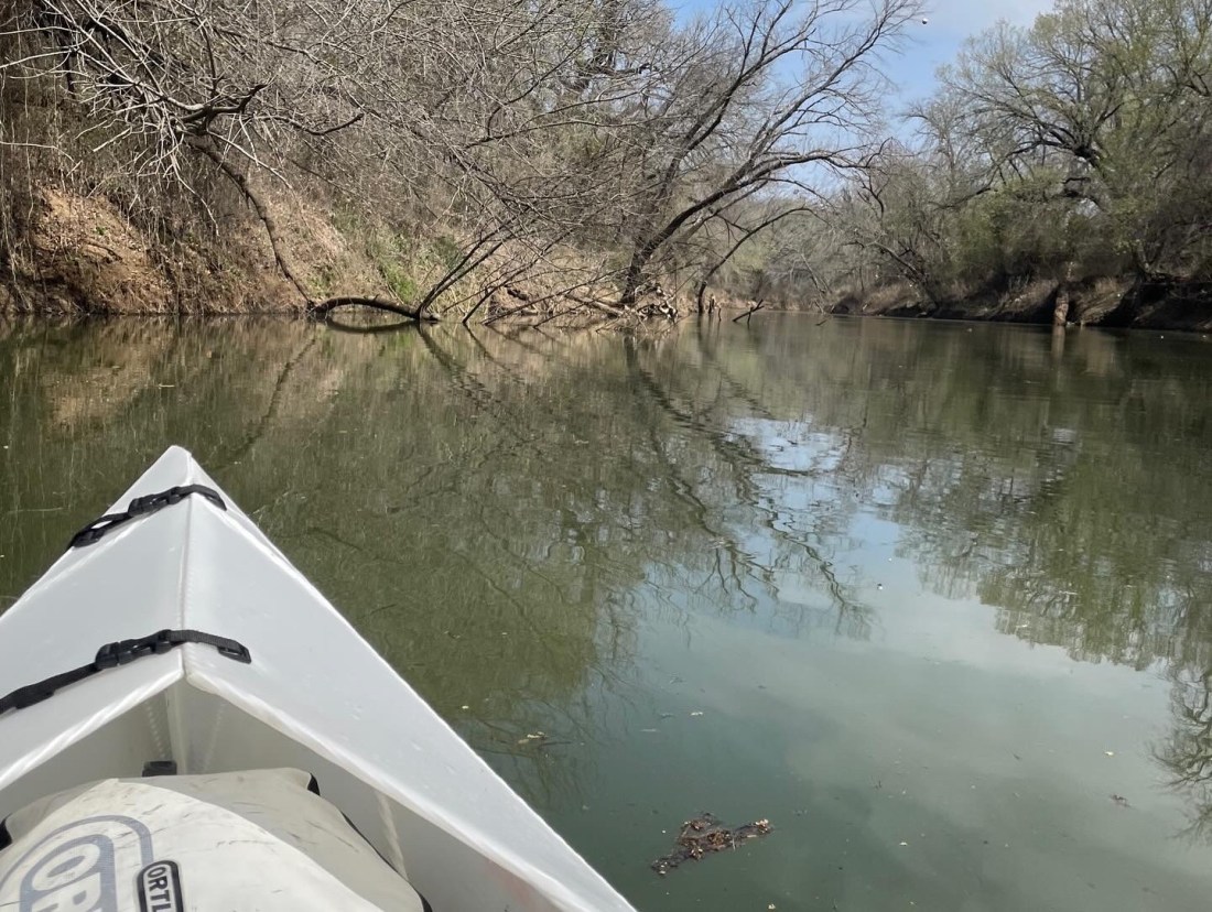 I went on a little adventure yesterday. Paddled upstream 4.64 miles in 3 hours. The current wasn’t bad in spots, but there’s a long stretch that seems unnaturally straight. It’s shallow and fast. Had to wade and drag the boat along behind. The whole business was much harder than I had anticipated (probably because I’m not very good at anticipating), but it was a wonderful experience.